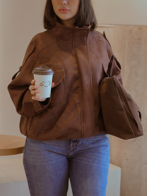 بامبر جکت جیر با قد ۶۵ سانت، آستردار با بهترین کیفیت دوخت رنگبندی: قهوهای و نسکافهای